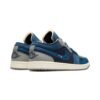 The Air Jordan 1 Low now arrives in a blue, black and grey colour scheme. This model features a low-top silhouette and stands out thanks to the patent leather panel on the toe. Underneath, a two tone rubber sole completes the design.