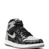Black/grey/white leather Air Jordan 1 High OG “Rebellionaire” sneakers from jordan featuring signature Air Jordan Wings logo, signature Swoosh logo detail, logo patch at the tongue, slogan print, contrasting panel detail, round toe, front lace-up fastening, ankle-length, branded insole and rubber sole. These styles are supplied by a premium sneaker marketplace. Stocking only the most sought-after footwear, they source and curate some of the most hard to find sneakers from around the world..