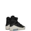 Black leather and canvas Air Fear Of God 1 hi-top sneakers from Nike featuring a square toe, a lace-up front fastening, a signature Nike swoosh and a white rubber sole. Supplied by a premier sneaker marketplace dealing with unworn, already sold out, in demand rarities. Each product is rigorously inspected by experienced experts guaranteeing authenticity.